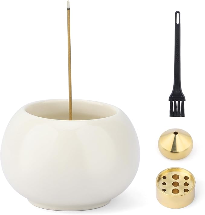 Segarty お香立て 白い 茶碗陶器 陶器香炉 2種類真鍮付属 和モダン おしゃれ お線香立て 掃除簡単 水洗い 香皿 香炉 疲労軽減 ストレス緩和 空気の浄化 仏具 和モダン香皿 ヨガ 瞑想リラックス 睡眠 ギフト適応