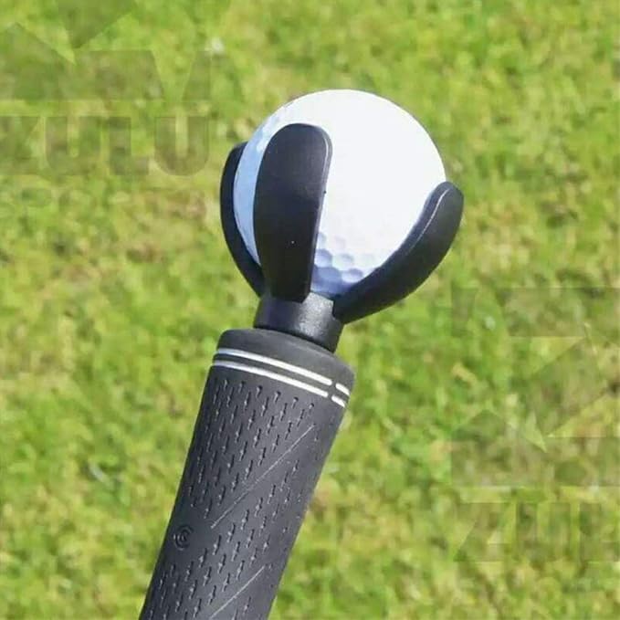 パターグリップのエンドに取り付けることで、腰を曲げずに、かがまずにゴルフボールを拾い上げることができる、便利なゴルフボールピッカー、ゴルフボール回収器です