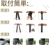 【簡単にインストール】ベルトを木などに数回巻いて、カラビナでベルト両端の金具をロックして固定完了。