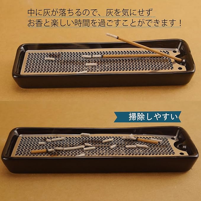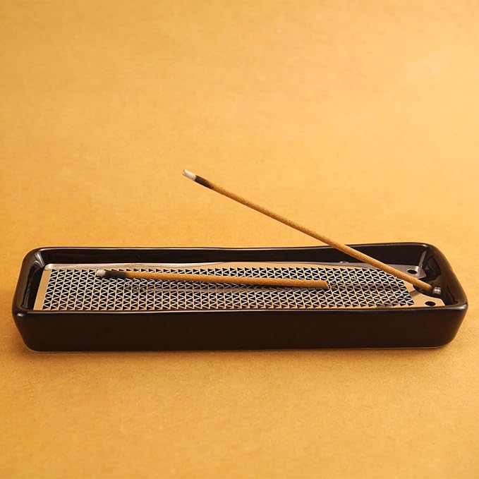 お香立て 横置き 仏壇用香炉 香炉皿 陶器 横置き 心を落ち着かせてくれる 仏壇用 和風 書斎 瞑想 睡眠 線香皿 インセンスホルダー 癒やし リラックス (黒い)