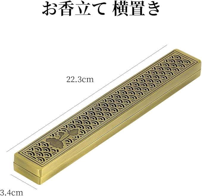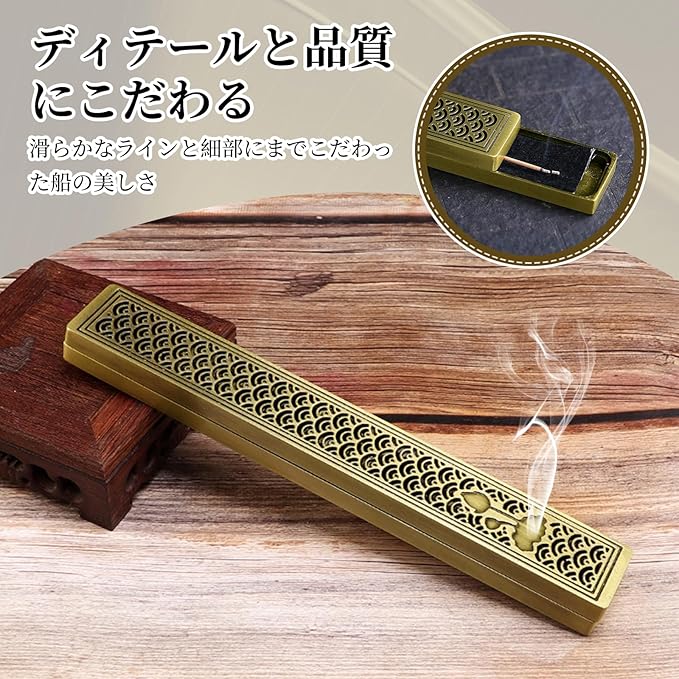 Zhejia お香立て 横置き 香炉 香皿 香立て 蓋つき 透かし彫り 和風 灰がこぼれない お香置き 書斎 瞑想 寝かせる 供養 仏壇 茶道 用品 (ブロンズ)