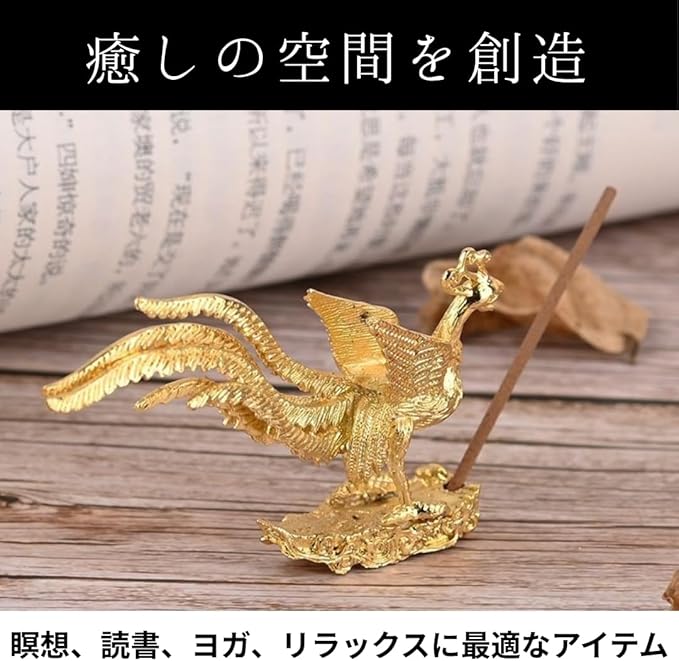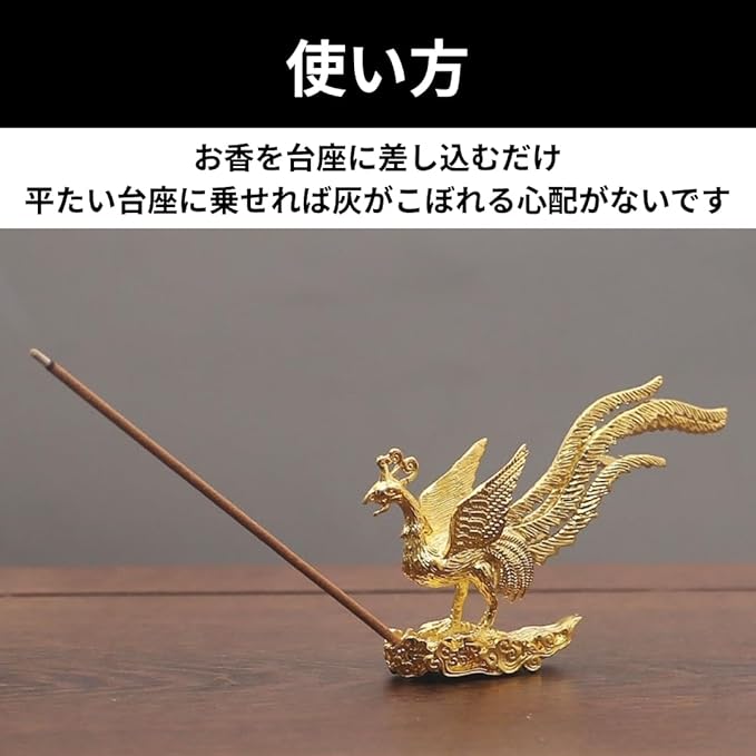 【金色の美しい鳳凰型お香立て】立体的な鳳凰をデザインした華やかなゴールドカラーの線香立てです。美しいデザインとともにお香の香りを楽しめます。お部屋のインテリアとしても非常におしゃれです。