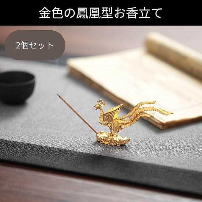 金色 鳳凰 置物 お香立て 2点セット 合金製 玄関 開運 昇運 金運 招福 風水 厄除け 魔除け グッズ 神輿 飾り インテリア 香立て 線香立て 癒し (鳳凰)