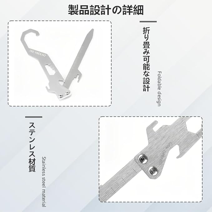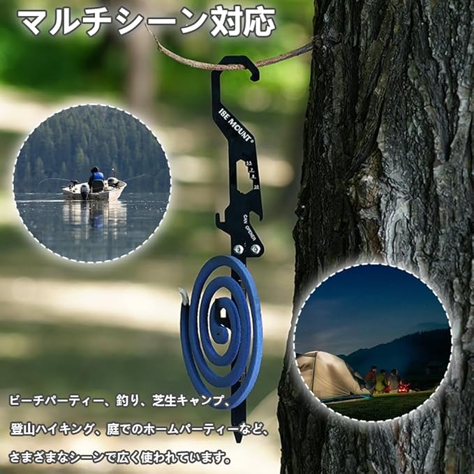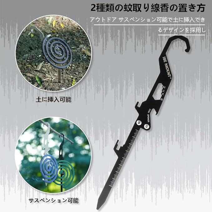 【多機能6 in 1】:蚊取り線香スタンドだけでなく、定規、スパナ、先端工具、栓抜き、フックを集めた6 in 1設計で、アウトドア生活の万能ツールです。飲み物のキャップを開けたり、物を修理したり、包装を外したり、釣りをしたりするときにサイズを測ったり、キャンプライトをぶら下げたりすることができます。キャンプ場で快適な時間を過ごすための万能アシスタントです。