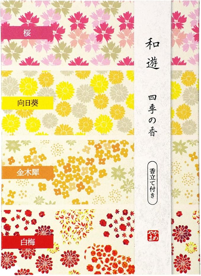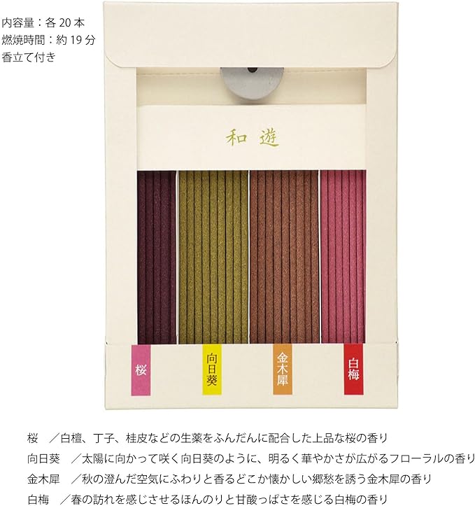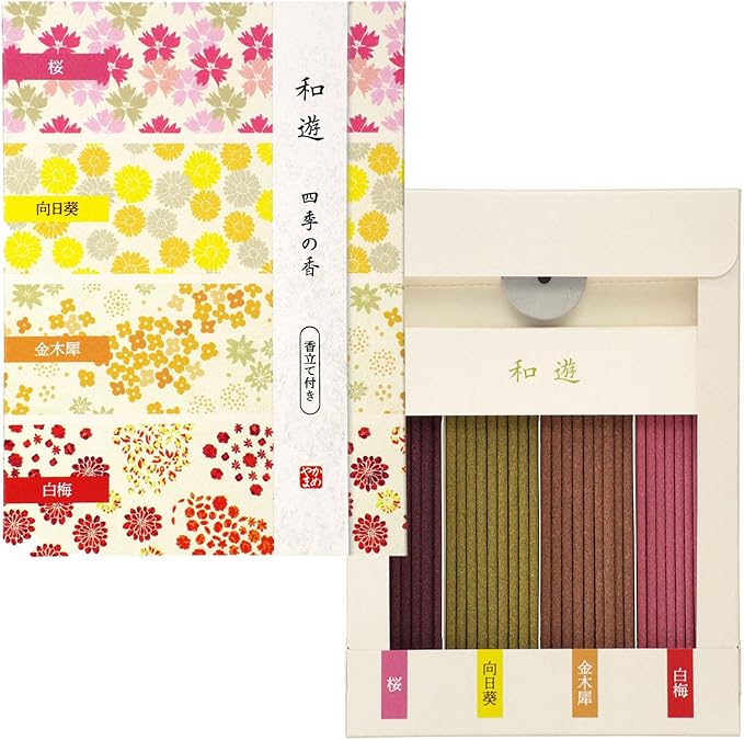 カメヤマ 和遊 アソート 四季の香(桜/白梅/金木犀/向日葵)1セット お線香 お香 香立て付き