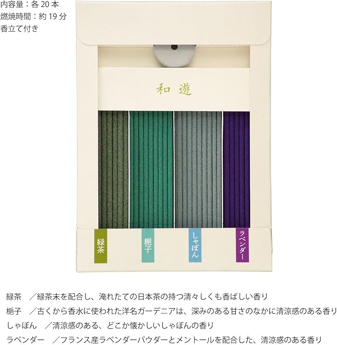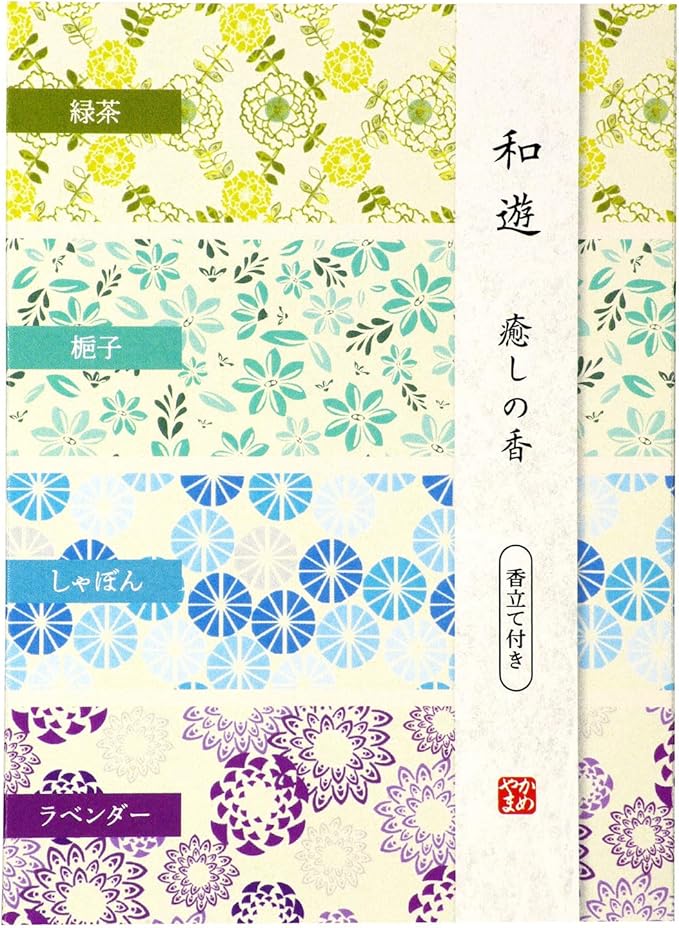 カメヤマ 和遊 アソート 癒しの香(緑茶/梔子/しゃぼん/ラベンダー) 1セットお線香 お香 香立て付き