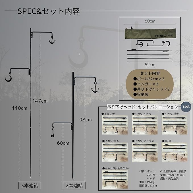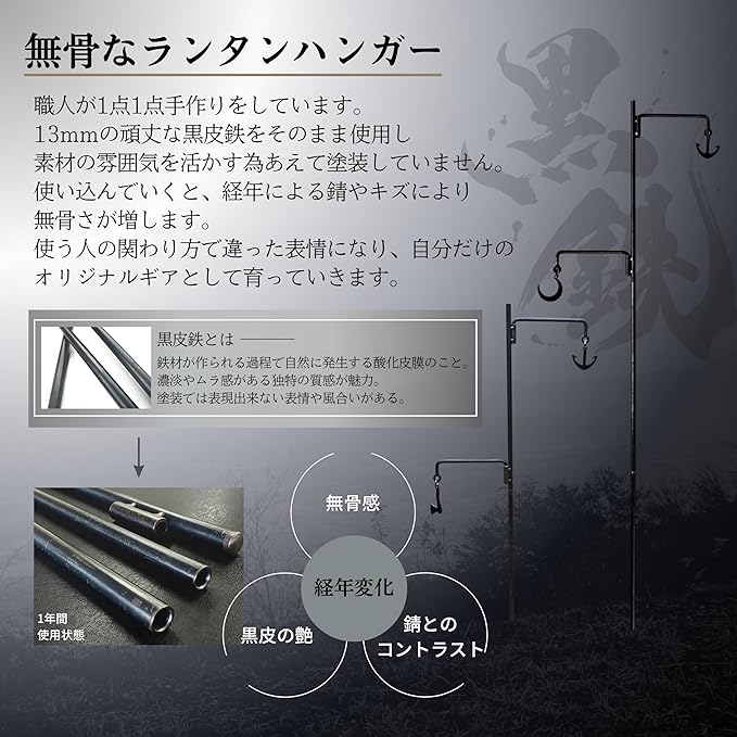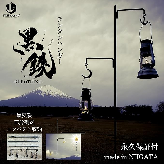 TNBworks ランタンハンガー 黒鉄 日本製 分割 式 コンパクト 収納 2WAY 13mm 黒皮 鉄 打ち込み
