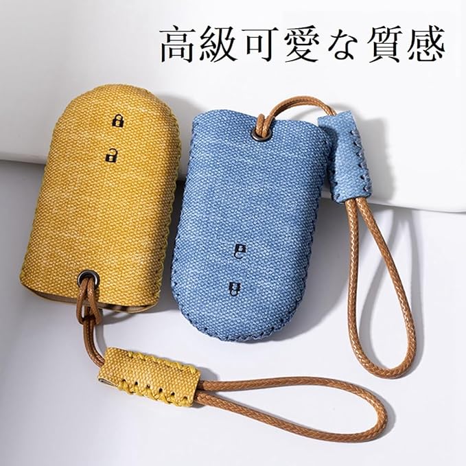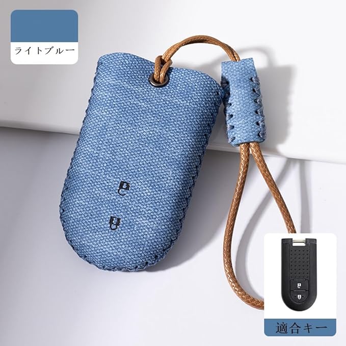 【高級可愛な質感】デニム模様のレザースマートキーケースです、表面はデニム素材です、裏地はキーに傷をつけないためか柔らかいスエ。純粋な手縫い、太い縫い、均一な縫い、耐久性が良く。デニム生地の縫製もしっかりしていて、長持ちしそ、防塵、耐衝撃、耐水性、高級感ある仕上がりとなっています。 タンク ルーミー ウェイク トールスマートキー専用設計のデニムキーケース、すべてのボタンと完全に整列し。【全面保護】衝撃に強く、日常生活での消耗に耐えしっかり保護できるので、落下や衝撃による損傷を軽減します。付属の細めの紐キーホルダーと一緒に使うことで、落下防止効果が得られます。