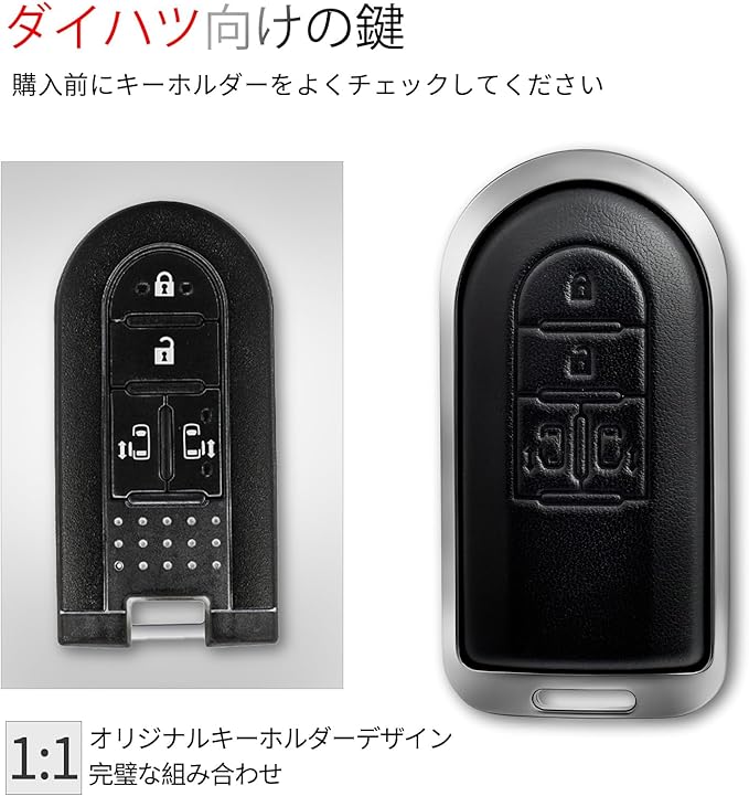 【OFFCURVE】 ダイハツ/トヨタ車用 スマートキー用キーケース 4ボタン ブラック/タント/タントカスタム/ウェイク/ムーヴ キャンバス/トール/タンク/ルーミー/など 専用設計