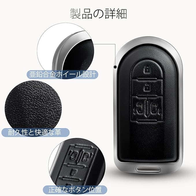 【高品質素材】このキーケースは耐久性に優れた亜鉛合金と上質な本革を使用して製作されています。車のスマートキー形状に基づき、1:1で精密に設計されており、キーにしっかりフィットします。360度保護設計で、大切なキーを衝撃や傷から守ります。