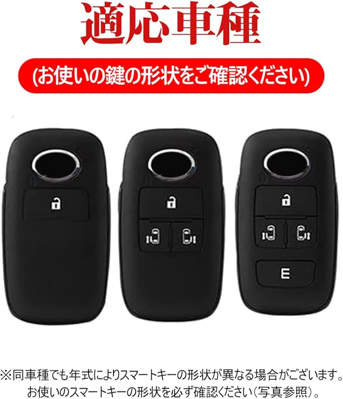 適合車種: ●タフト (2022年12月~) 5BA-LA900S,LA910S ●アトレー (2021年12月~) 3BD-S700V,S710V 3BD-S700W,S710W ●ハイゼットトラック (2021年12月~) 3BD-S500P,S510P ●ハイゼットカーゴ (2022年12月~) 3BD-S700V,S710V 3BD-S700W,S710W ●ロッキー (2019年11月~) 5BA-A200S,A201S 5AA-A202S 3BA-A210S ●トヨタ ライズ (2019年11月~) 3BA-A210A 5AA-A202A 5BA-A200A,A201A,A210A ●ムーヴ キャンバス (2022年7月~) 5BA-LA850S,LA860S ●タント/タント カスタム (2019年7月~) 5BA-LA650S,LA660S 6BA-LA650S,LA660S ●タント ファンクロス (2022年10月~) 5BA-LA650S,LA660S ●トール (2022年9月~) 5BA-M900S,M910S 4BA-M900S ●トヨタ ルーミー (2022年9月~) 5BA-M900A,M910A 4BA-M900A(※ 同車種でも年式によりスマートキーの形状が異なる場合がございます。お使いのスマートキーの形状を必ず確認ください(写真参照)。