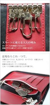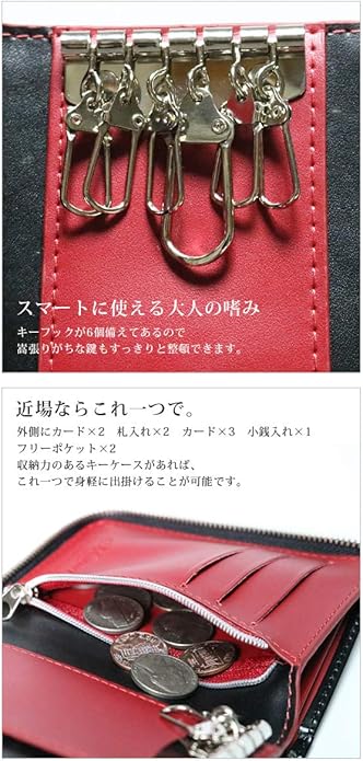 【仕様】カード入れ 2(外側)、キーフック 6、札入れ 2、カード入れ 3、小銭入れ 1・フリーポケット 2