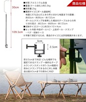 【クランプ式】このバージョンの製品にはペグは含まれておらず、地面に打ち込んで使用する場合は「2WAY」バージョンを選んでください。第三世代の改良は主にテーブルに挟んで使用する方法に焦点を当てており、"クランプ式"バージョンを提供しています。ペグが含まれていないため、コストパフォーマンスが高く、ランタンをテーブルに掛けて使用するキャンプ愛好者に適しています。