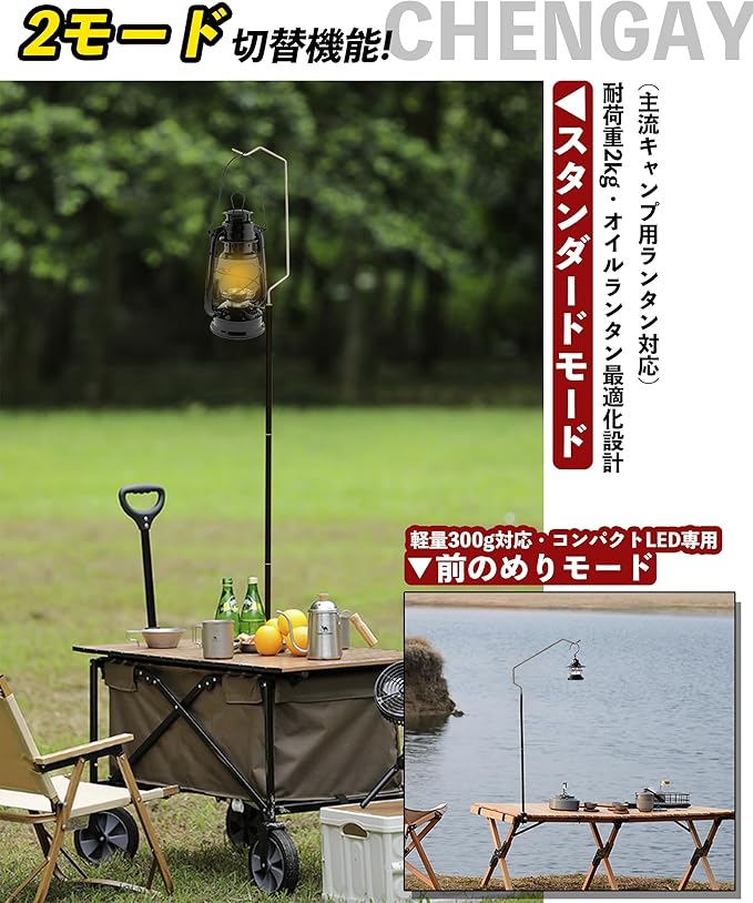 CHENGMAY ランタンスタンド ランタンポール 前のめりモード 1.5mm極厚ポール 頑丈 打ち込み式 テーブル 2way 軽量 コンパクト 自立式 安定性強化 耐荷重1.5kg アウトドア キャンプ用品 収納ケース付き 3世代
