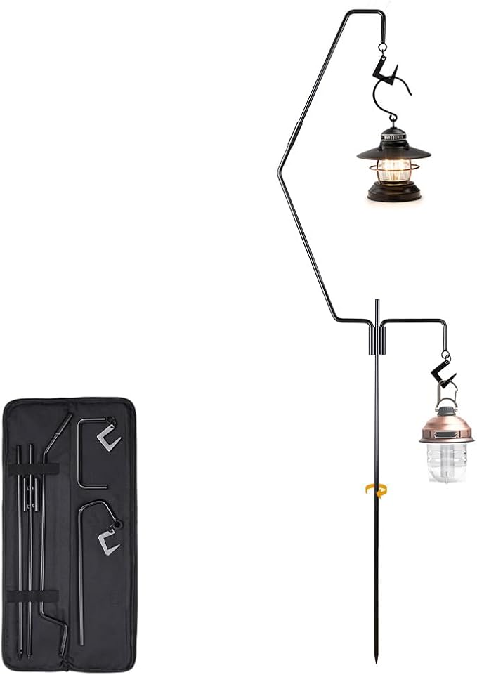 LYIYI ランタンスタンド ランタンハンガー 打ち込み式 スチール ランタンポール 多機能 軽量 コンパクト アウトドア キャンプ用 専用収納ケース付き…