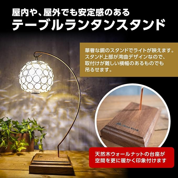 SWAG GEAR ランタンスタンド ウォールナット 銅 おしゃれ アウトドア&キャンプ (Semicircle半円形)