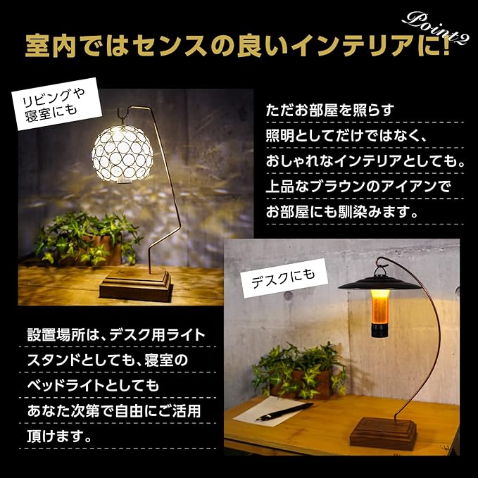 「キャンプでもインテリアでも大活躍!ランタンスタンドの使い勝手と魅力」キャンプでの使用はもちろん、室内でのインテリアとしても活躍できます。キャンプサイトでは、ランタンを吊るして、キャンプファイヤーの周りに明かりを灯すことができます。また、テーブルに置いて、部屋の雰囲気を変えることができます。室内で使用する場合は、雰囲気をより一層高めるために、キャンドルやアロマを併用することができます。
