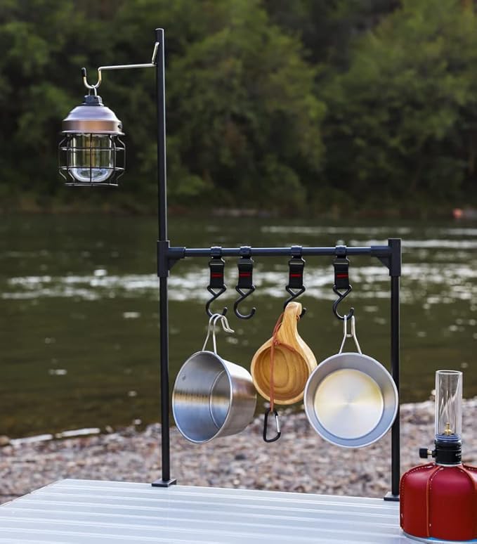 ►【商品仕様】 錆びにくく頑丈な高強度のアルミ合金素材を採用。組み立て完成後のサイズ:74*36CM。収納サイズ:38*8.5*6CM。サイズ重さ:約500g。夜でランタンスタンドとして使えるのみならず、BBQで食器の一時置き、釣りの器具の収納、ビーチ、キャンプ、といったアウトドアイベントにも大活躍、7キロを超えないものを存分に掛けられます。