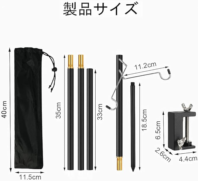 ►【製品仕様】設置時の高さ:約160cm。収納の長さ:約40cm。 パッケージ重量:約350g。 ランタンポール:アルミ合金製。直径:1.2cm、全長:約35cm。セット内容:ペグ、ランタンポール、ランタンハンガー。