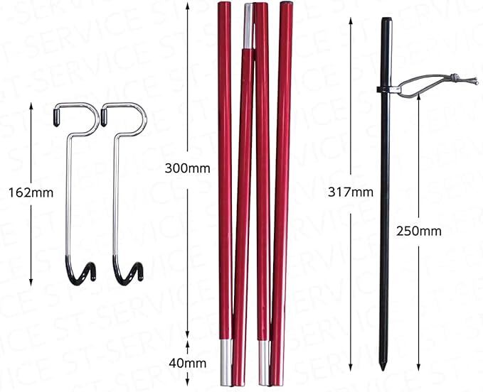 4本連結式ポール:ジュラルミン直径:12mm 専用ペグ:スチール ハンガー:スチール