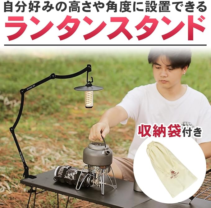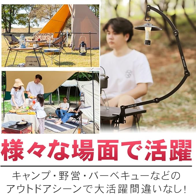 ノーブランド品ランタンスタンド吊り下げ調節可能ギア式クランプ挟むだけ工具不要折り畳み持ち運びキャンプ