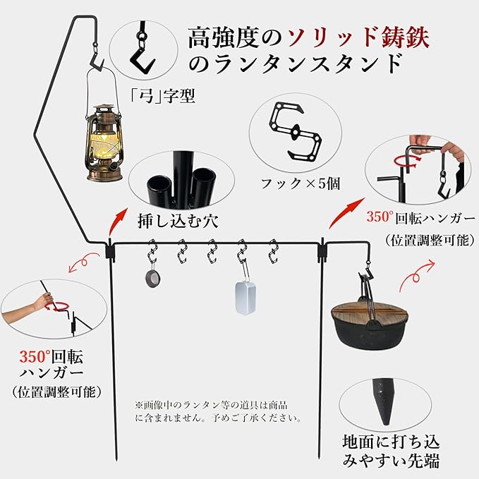 【上質な素材】高品質なソリッド鋳鉄素材より作られ、強度が高く、10kgまでの重量に耐えられます。また、重いランタ ンを吊っても変形しにくく、耐久で長持ちしてご利用頂けます。