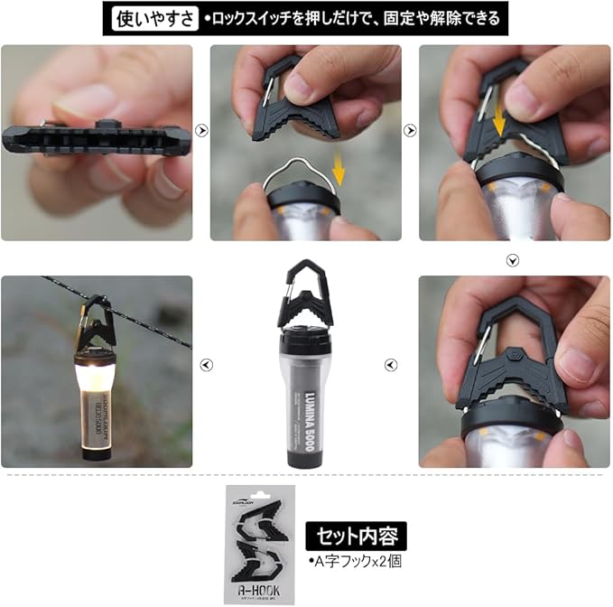 安定性:手動的にロックオン/オフスイッチを押しだけで、キャンプランタンを吊るし、落下やぐらつきすることはなく、しっかりと支えます。