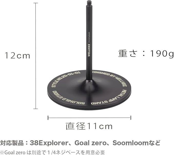 WELLHIKE ゴールゼロ スタンド 38explore ランプベース 卓上 ランタンスタンド ゴールゼロ台座 ランタンアクセサリー Ledlenser/38explore/Soomloom 1/4ベース 対応 (L)