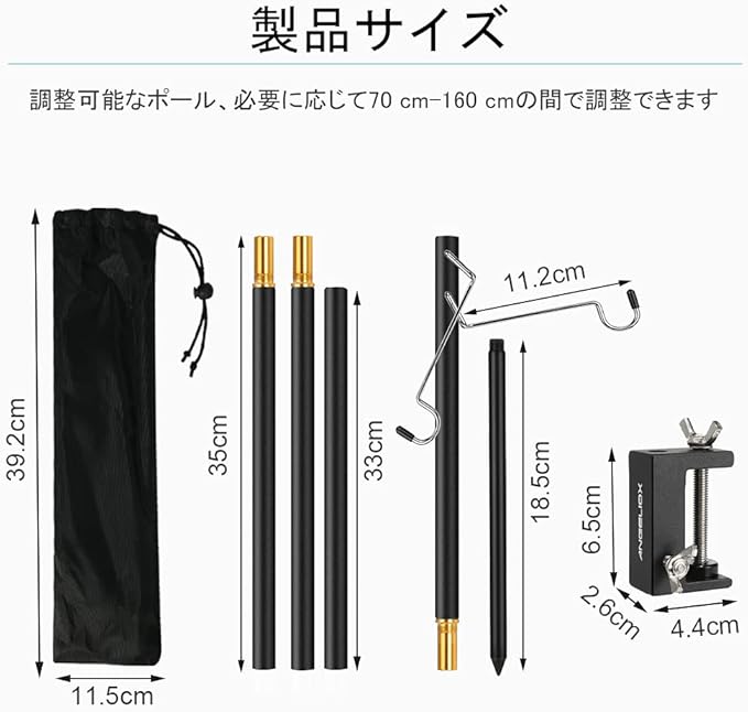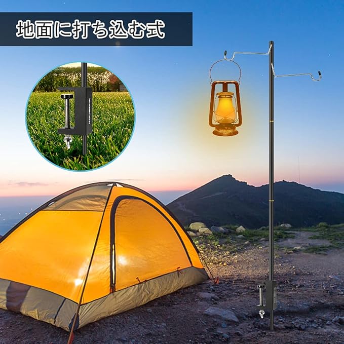 高品質な素材:ランタンスタンドのアルミ合金製のポールは直径は12mmまで、ポールの壁厚も1mmの厚さを採用されて、全体の耐荷重が大幅のアップとなります。固定クリップとグラウンドペグは高品質のスチール製であるため、ランタンポールをテーブルまたは地面にしっかりと固定で、揺れなく、安定となります。フックも高品質のステンレス製で、重いものを吊るしても変形しません。