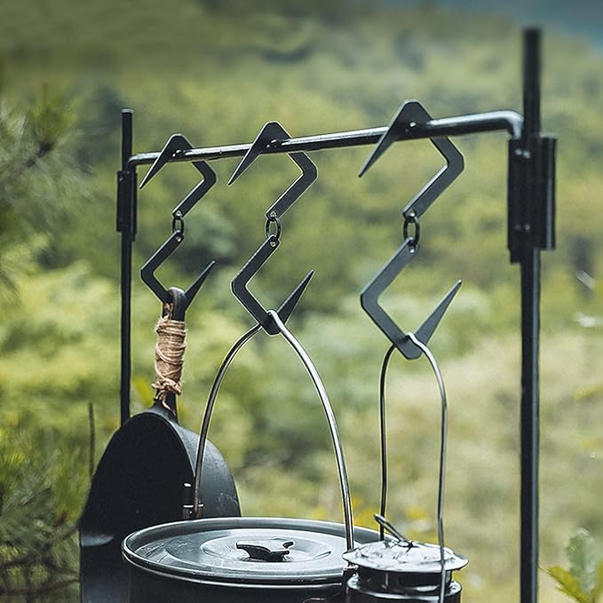 なお、焚き火フックとして使って、様々なハンガーを組み合わせて使用可能でございます。