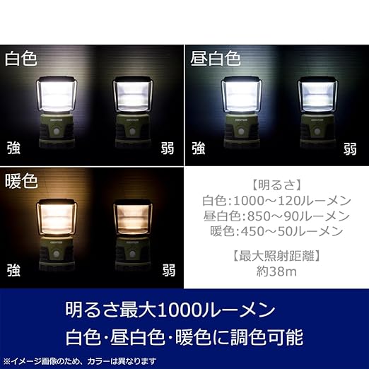 明るさ:白色/1000~120ルーメン、昼白色/850~90ルーメン、暖色/450~50ルーメン