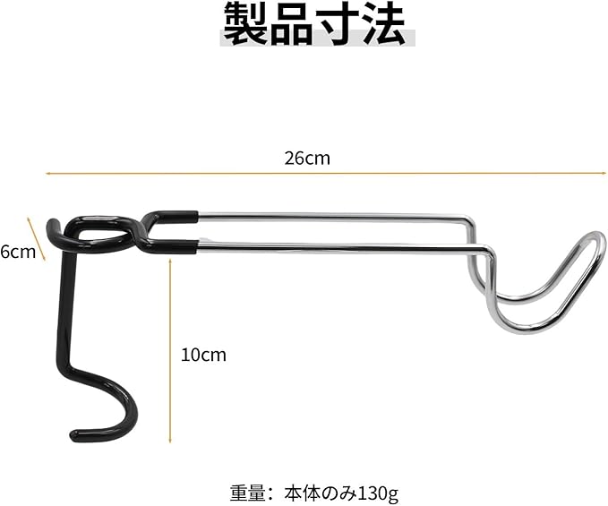 【高耐久ステンレス構造】304ステンレス鋼製のワイヤーフレームと滑り止めゴムパッドを組み合わせた設計で、重量物を吊り下げる際の安定性を確保。長期間使用しても錆や変形の心配が少なく、キャンプ用品を安全に固定できます。