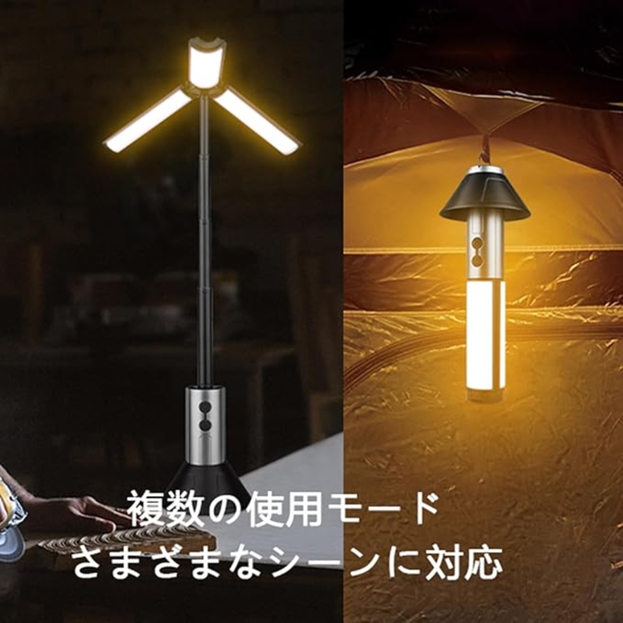 【多目的】取り外し可能なランプシェードのデザインにより、キャンプ時に暖かく洗練された雰囲気を簡単に作り出すことができます。さまざまな使用方法で、このキャンプランプは即座にスタイルを変え、アウトドアアクティビティをさらに楽しくすることができます。