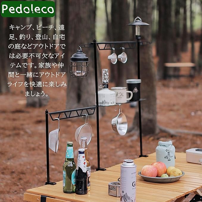 Pedoleco ランタンスタンド 卓上 キャンプ用 クランプ式 アルミ製 折り畳める 収納袋付き キャンプ/ビーチ/釣り/登山/遠足 吊り下げ 軽量 組み立て簡単 持ち運び便利 用品整理 アウトドア