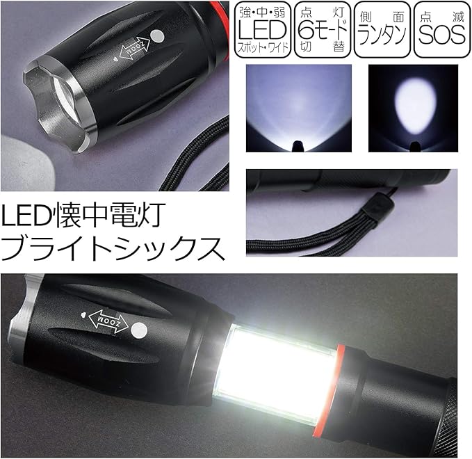 コモライフ LED懐中電灯 ブライトシックス 防災 アウトドア ランタン 電池式 スタンド マグネット 携帯