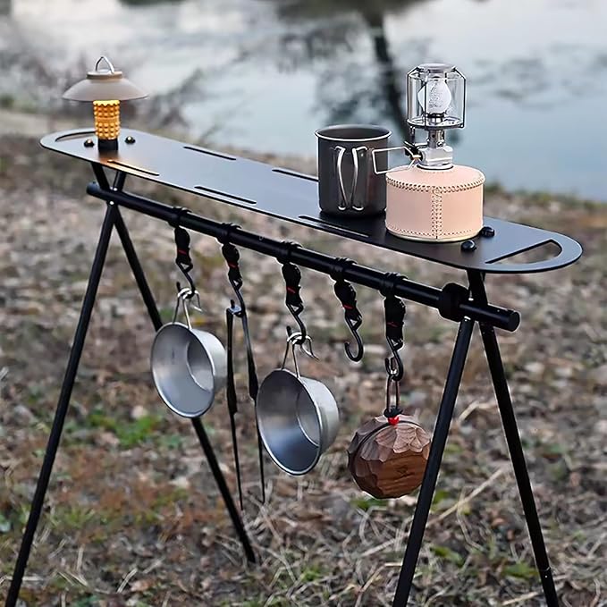 【高級感】 錆びにくく頑丈な高強度のアルミ合金素材を採用し、黒の外観は高級感があります。メインポールの直径は1.9cm、サポートポールの直径は1.1cmで、耐久性があります。ハンギングラックを持ってアウトドアでキャンプに行くときは、様々なキャンプ用品をかけて、きれいな写真を撮ることができます。