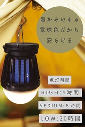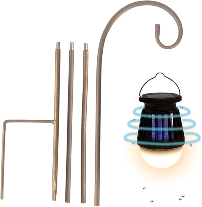 ■(殺虫ランタン)220g (スタンド)260gの軽さなので、持ち運びも便利。■太陽光発電のソーラーパネルとUSB充電の選べる充電方式。災害の際は、ソーラー充電ができると大変便利です ■ソロキャンパーにお勧め ■テントやタープに吊るして、ファミリーキャンプにもお勧め ■殺虫灯の光におびき寄せられた虫を高電圧で電撃殺虫します(薬剤は一切使用しません)■「置き」「掛け」2way ■IPX6の防水仕様だから本体の水洗いも可能です ■リチウム電池の寿命の目安は約400回の充放電です ■スタンドは組み立て式で3段階長さ調整が可能 ※収納袋の付属はございません ※スタンドを固定する際、ハンマーで軽くたたいてください ※石が多い場所にはスタンドを刺すことはできません ※スタンドのパッケージはソーラーライト用になっておりますが、ランタンとセットでお勧めしております ※スタンドの塗装はアンティーク塗装になります。