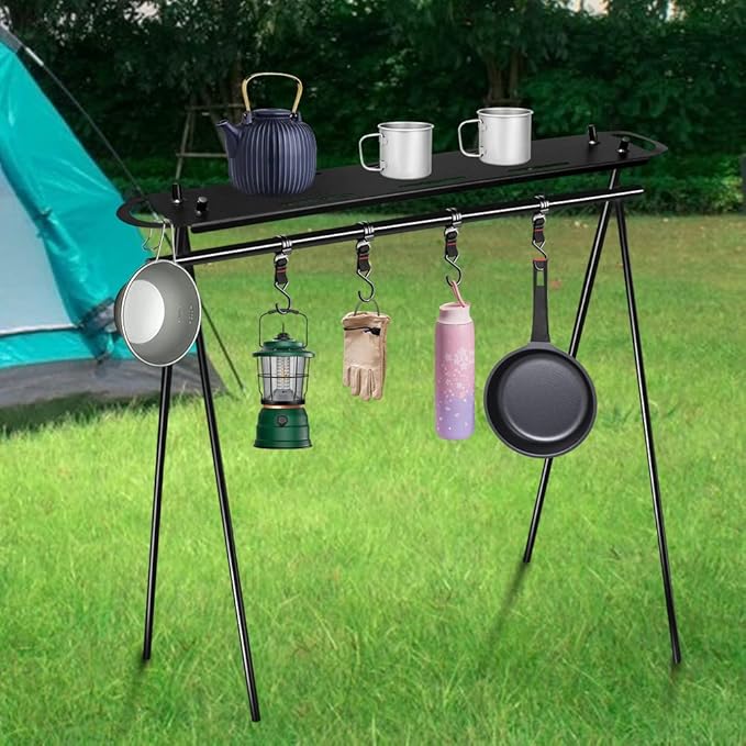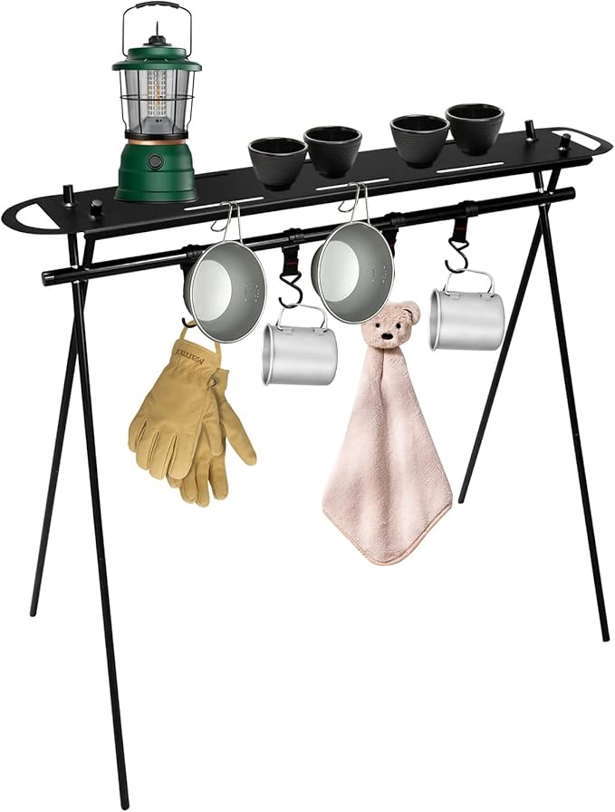 【幅広く利用可能】ランタンだけではなく、ピクニック用品、キッチン用具、食器、道具、カバン、水着、服などを掛けることができます。ソロキャンプからファミリーキャンプまで幅広いアウトドアシーンで活躍してくれます。室内干し用のラックとして、室内でも使用可能。か