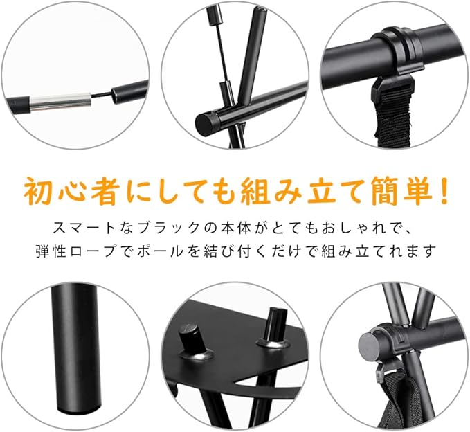 【設置簡単】全てのポールがショックコードでつながっていています。工具なしで組み立ても分解も1人で簡単にできる設計なので、ソロキャンプにも適用。また、ポールを折りたたんで収納するとコンパクトになり、持ち運びもしやすく、収納場所を取らない、簡単に持ち運べます。