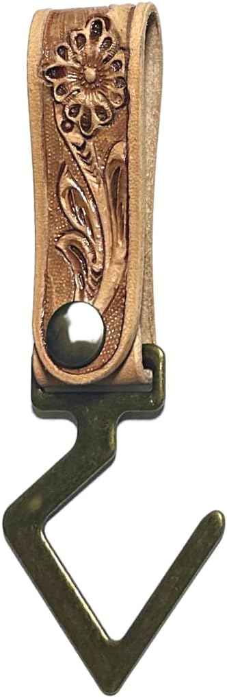 本革ランタンフック 手彫りフラワーカービング 花模様 レザーフック ランタンハンガー ハンドメイド (1個)