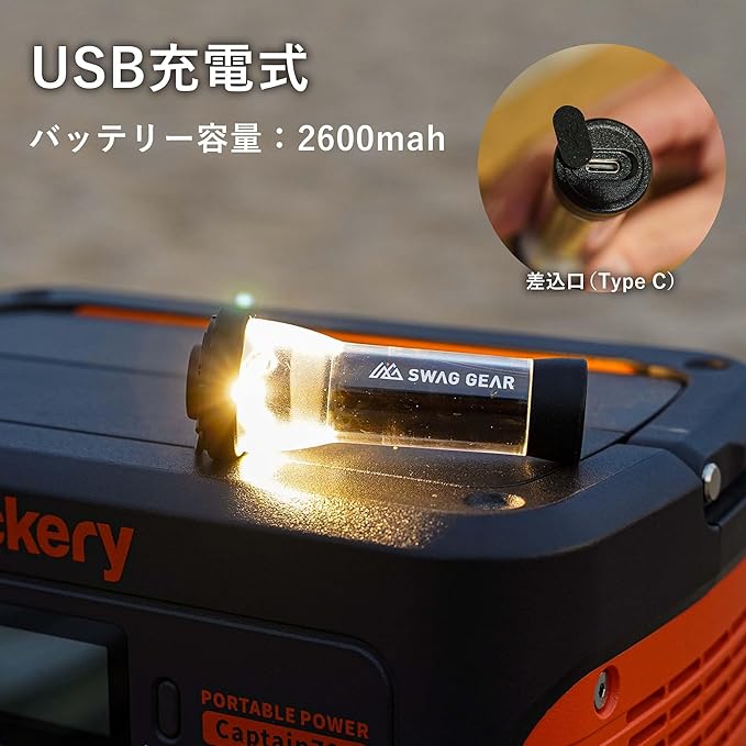 SWAG GEAR キャンプ用ランタン LEDランタン USB充電式 250LM高輝度 最大約120時間持続 無段階調光 9.8cm超ミニサイズ