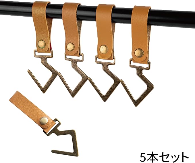 RODGERS ハンギングラック用レザーフック(ブラウン) 金属 ランタンフック ハンガー 吊り下げ C字フック ライト 調理器具 キッチン 野外 収納 整理 テントポールフック ランタンハンガー 多機能 ランタンスタンド ハンギングラック キャンプ アウトドア キャンプ用品 ソロキャンプ 登山 テント フック レザーフック【5個セット】 (ブラウン)