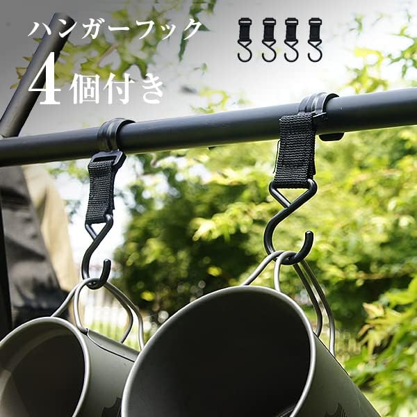 簡単につけ外しのできる可動式ハンガーフック4個付き。食器やランタンなどお好みの配置で掛けられます