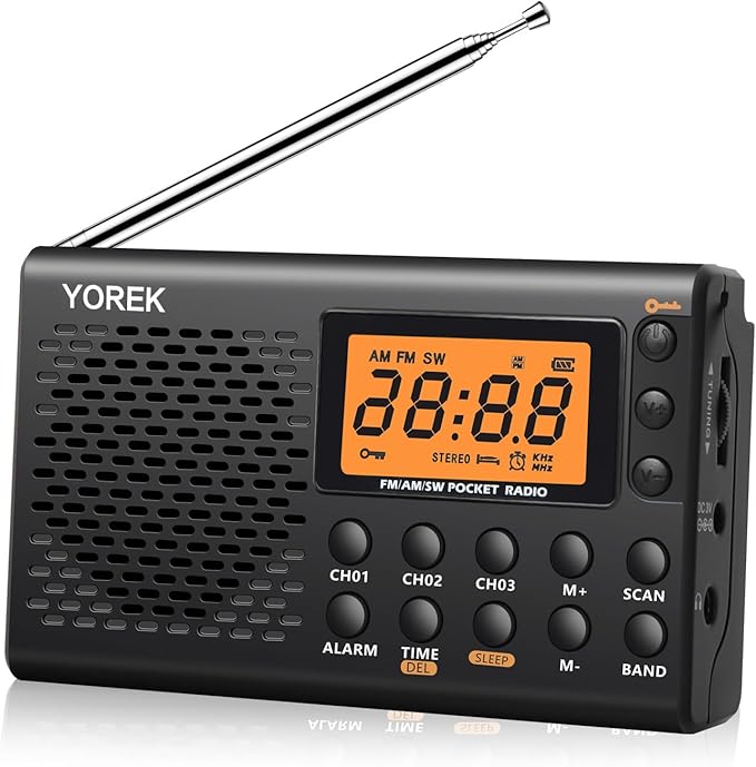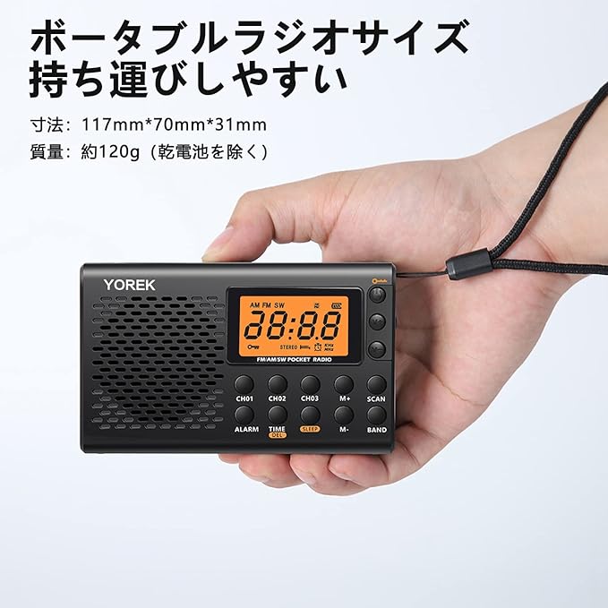 YOREK AM/FM/SW 高感度受信ポータブルラジオ 電池式 スリープ機能付きワイドFM対応小型ラジオ ステレオイヤホン付属する(日本語取説付き) (クロ) (黒い)
