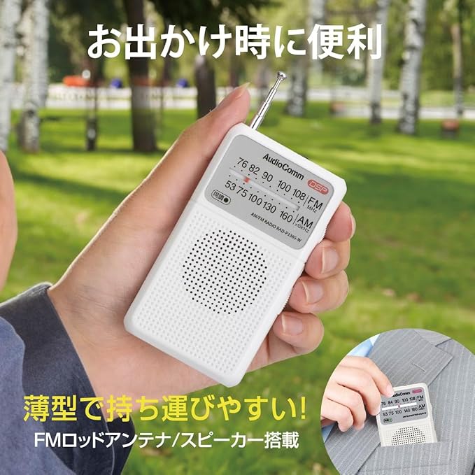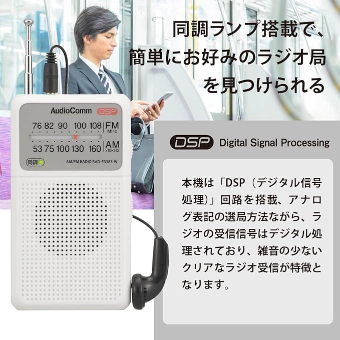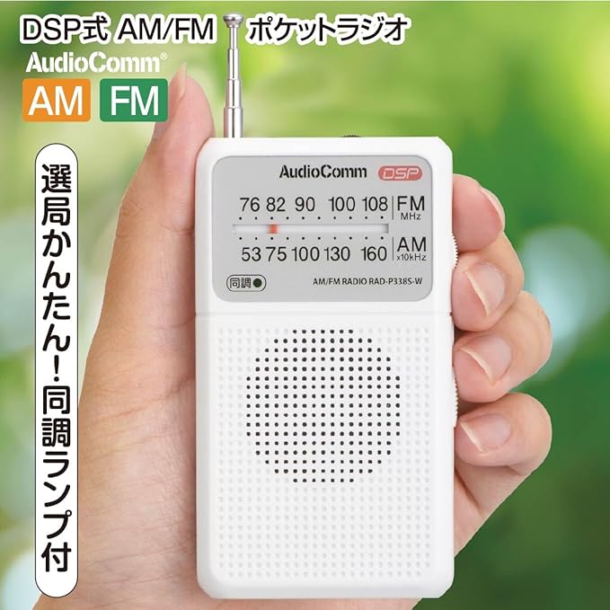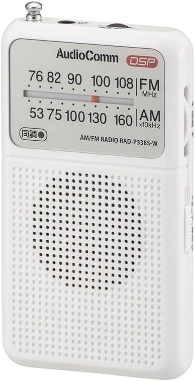 オーム電機AudioComm ラジオ 小型 ポケットラジオ デジタル DSP式 AM/FM ワイドFM ホワイト 乾電池式 RAD-P338S-W 03-0987 OHM