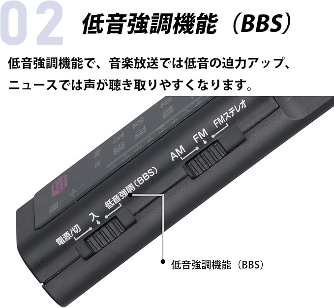 ● ワイドFM(FM補完放送)対応● 光る同調ランプ● 低音強調機能● ステレオイヤホン(FMアンテナ兼用コード)付属● 本体カラーはブラックです