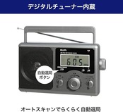 特徴 デジタルチューナー内蔵, 大型液晶付, 時計内蔵, ポータブル