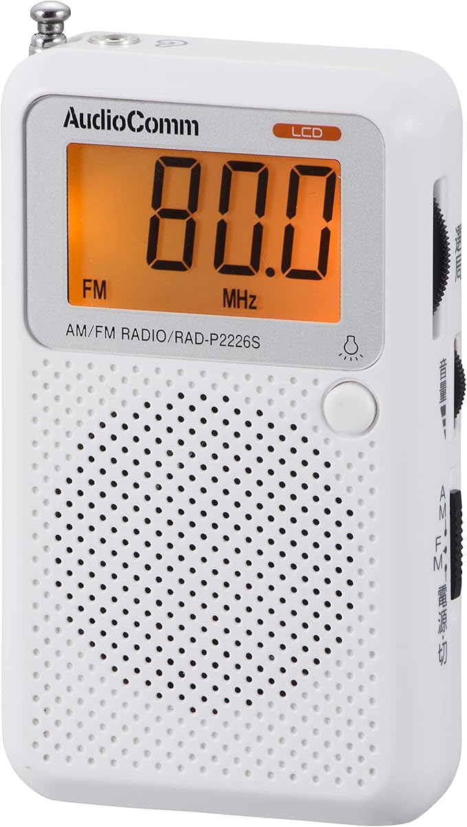オーム電機AudioComm ラジオ 液晶表示 ポケットラジオ 携帯ラジオ ワイドFM ホワイト RAD-P2226S-W 07-8855 OHM