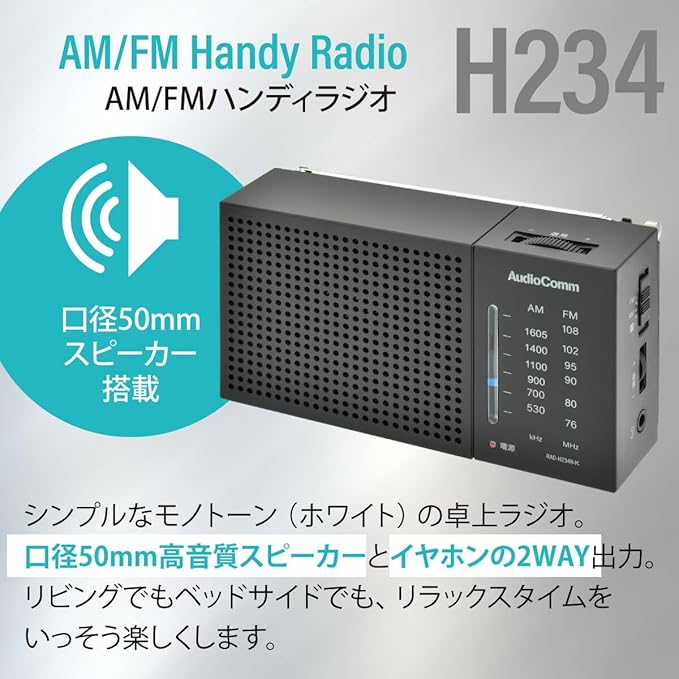 オーム(OHM)オーム電機AudioComm ラジオ 小型 AM/FMハンディラジオ ブラック RAD-H234N-K 03-7054
