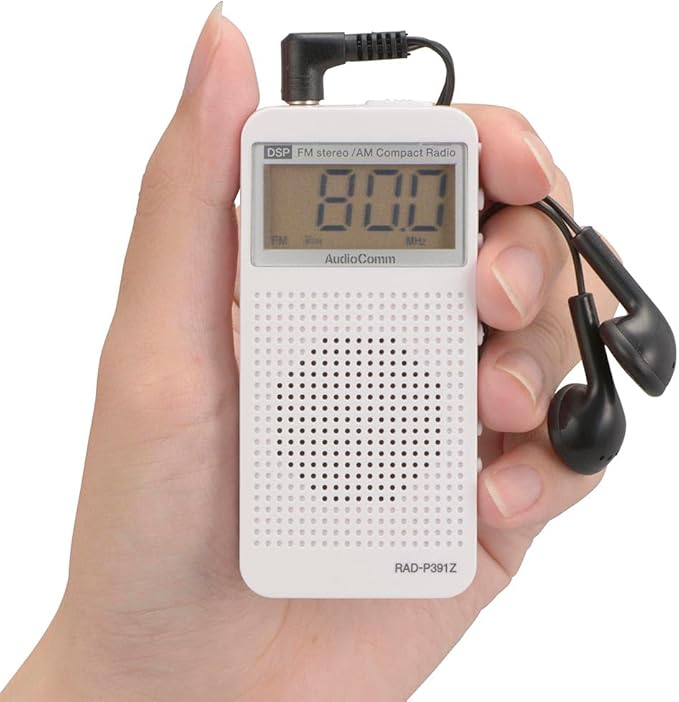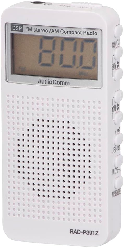 オーム電機AudioComm ラジオ ポケットラジオ コンパクト ポータブルラジオ AM/FMステレオ デジタルチューナー 自動選局/登録 ATS スピーカー付 時計 アラーム イヤホン付き ワイドFM コンパクトDSPラジオ ホワイト RAD-P391Z 03-5030 OHM